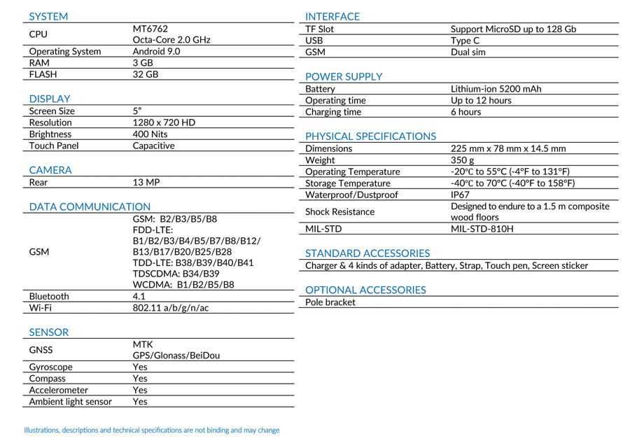 S70G is equipped with Android 10 operating system and has a highly detailed WUXGA resolution (1920×1200) display for greater detail quality. The 8000mAh battery allows the instrument to work over 8 hours and the IP67 protection makes the device suitable for any environment.